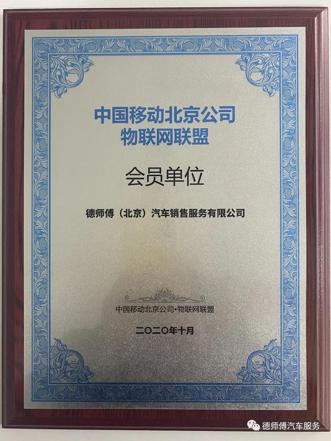 恭贺!德师傅成为中国移动北京公司物联网联盟会员单位