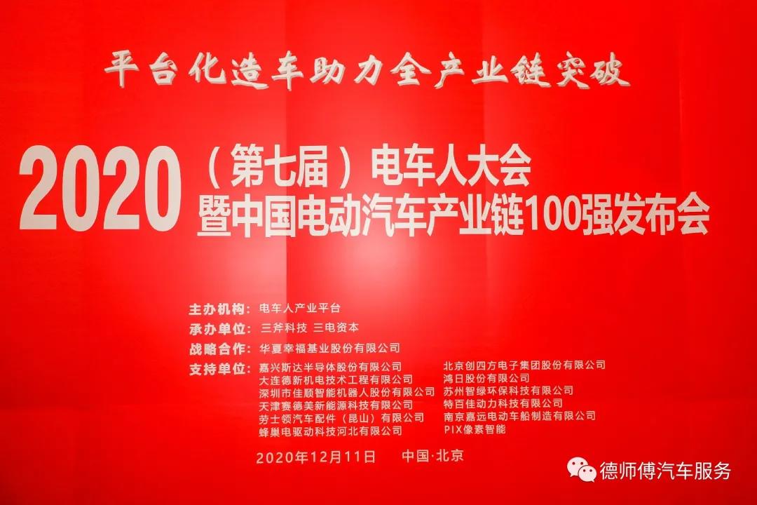 2020(第七届)电车人大会于12月10-11日在北京举行,大会主题定为“平台化造车助力全产业链突破”,共同探讨做大中国电动汽车市场、做强中国电动汽车产业链的路径和策略。德师傅于2017年成为电车人联合会副会长单位,协助电车人联合会完成新能源汽车市场的探索与研究,德师傅今年已连续四年任电车人联合会副会长单位。