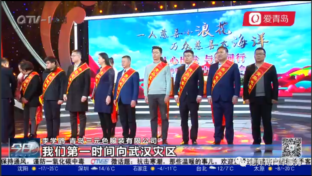 一人慈善小浪花,万众慈善大海洋。1月7日下午,由青岛市慈善总会主办的2020年度“青岛市慈善十佳”颁奖晚会在青岛电视台800平米演播厅举行,晚会上青岛市慈善总会为德师傅颁发抗击疫情“捐赠贡献奖”。