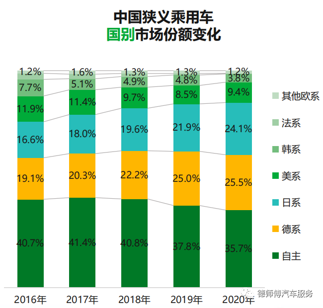 2020年SUV市场份额略有回升,德、日、美系车份额占比增大
